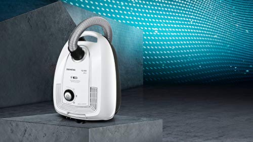 QuattroPower Technology: Siemens high-performance technologie voor uitstekende reinigingsresultaten bij laag energieverbruik PowerSecure System: voor langdurige reinigingsprestaties, ook als de zak vult. De PowerProtect stofzak garandeert hoge prestaties wanneer de zak vult. Minimaliseert de stofzak vervangen en bespaart extra kosten. Turboborstel. Spleetmondstuk. XXL gevoerde mondstuk: extra breed voor snellere reiniging van gestoffeerde meubels. Elektronische zuigkrachtregeling met draaiknop. Wasbaar filter. Vervangende stofzuigerzak: type G ALL. Ergo-handgreep. Telescopische buis. Automatische kabelinvoer. Actieradius: 11 m. 4 zwenkwielen. Parkeer- en berghulp. Gewicht: 4,5 kg (zonder zuigaccessoire). Geluidsniveau: 80 dB (A).