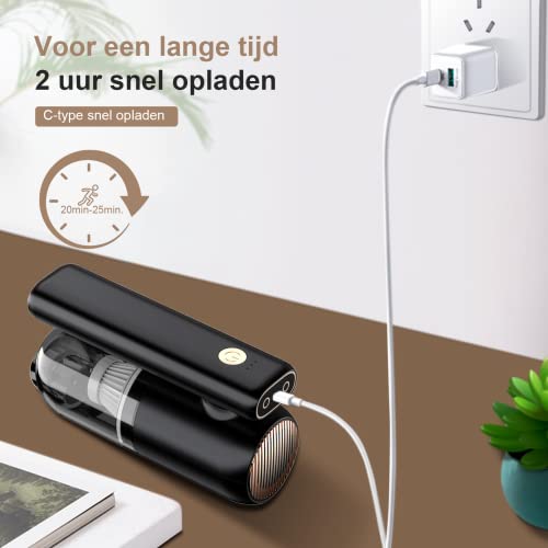 Laadpoort Type C🥇:In tegenstelling tot andere producten op de markt zijn de draadloze handstofzuigers uitgerust met een krachtige 4000 mAh lithium-ionbatterij. Bescherming tegen ingangsspanning, stroombeveiliging en kortsluitbeveiliging zorgen voor veiligheid tijdens het opladen. De handstofzuiger kan in 2 uur worden opgeladen en de reinigingstijd is lang, 30 minuten.