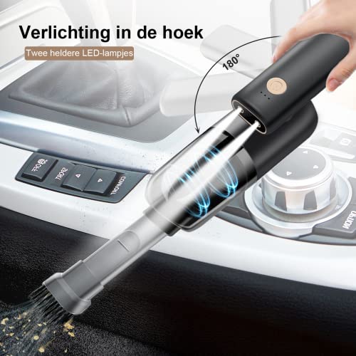 Multifunctionele autostofzuiger met LED-licht🥇:Deze draadloze mini-stofzuiger weegt slechts 363 gram en is uitgerust met twee LED-lampen die tot 10 dagen meegaan. Je kunt dus gemakkelijk schoonmaken in slecht verlichte ruimtes in de auto, gewoon de LED-verlichting inschakelen en beginnen met schoonmaken (de lange knop bedient de LED-verlichting). Deze stofzuiger is de beste keuze voor het reinigen van auto’s.