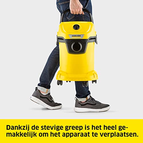 Specification: Kärcher Nat-/Droogzuiger WD 3 V-17/4/20, blaasfunctie, vermogen: 1000 W, kunststof tank: 12 l, zuigslang: 2 m, inclusief patroonfilter, vliesfilterzak, mondstukken