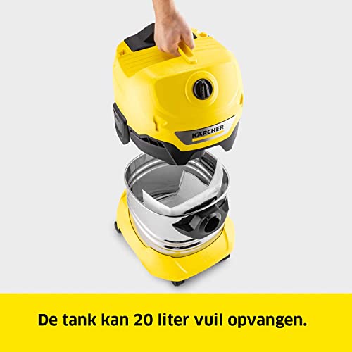Kärcher Nat-/Droogzuiger WD 4 S V-20/5/22, vermogen: 1000 W, roestvrijstalen tank: 20 l, zuigslang: 2,2 m, inclusief vlakfilter, vliesfilterzak, mondstukken
