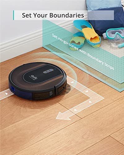 Installeer Grensmarkeerstrips: sluit de speelruimte van uw kind of de mand van uw huisdier uit. De RoboVac gebruikt speciale dubbele Hall-sensoren om de door u geïnstalleerde grensmarkeerstrips te detecteren, zodat u er zeker van kunt zijn dat de stofzuiger alleen de gewenste gebieden schoonmaakt.